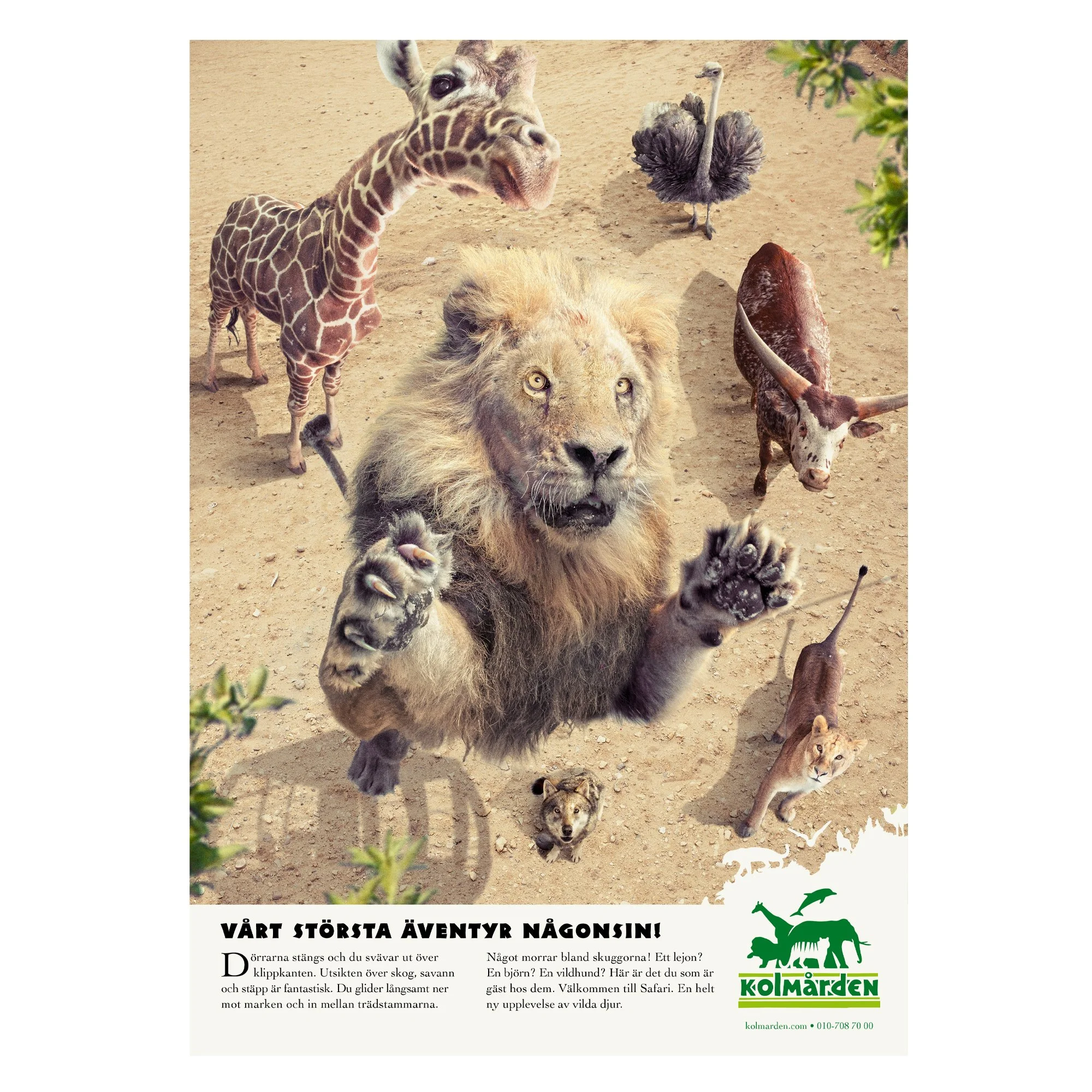 Resultatet blev en symbol där silhuetter av parkens mest ikoniska djur samspelar i negativa och positiva lager – grafisk storytelling, som gestaltar djurparkens kärnupplevelse. Välkommen in i det vilda!